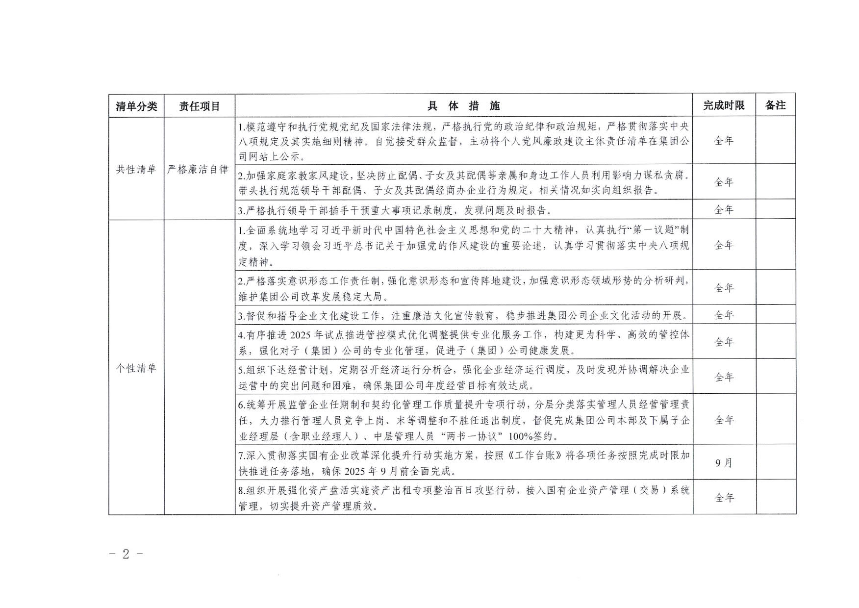 南寧交投集團(tuán)領(lǐng)導(dǎo)班子其他成員2025年度黨風(fēng)廉政建設(shè)“一崗雙責(zé)”清單(二)