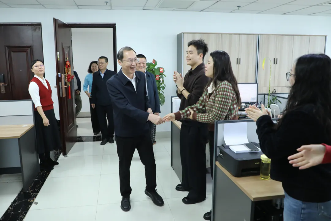 “新年好,給大家拜年了,祝大家身體健康,工作順利!”喜氣祥和的氛圍中,領(lǐng)導(dǎo)們與各子(集團(tuán))公司、各部門員工親切握手、熱情交談。曹壯對大家過去一年的辛勤付出表示衷心感謝,希望大家迅速從“放假狀態(tài)”切換到“工作模式”,繼續(xù)鼓足干勁、開拓創(chuàng)新,以馬上就辦、敢做善成的奮進(jìn)姿態(tài)迎接新的挑戰(zhàn),凝心聚力、真抓實干、攻堅克難,確保各項工作有序推進(jìn)、高效落地,為全面完成各項目標(biāo)任務(wù)開好頭、起好步。