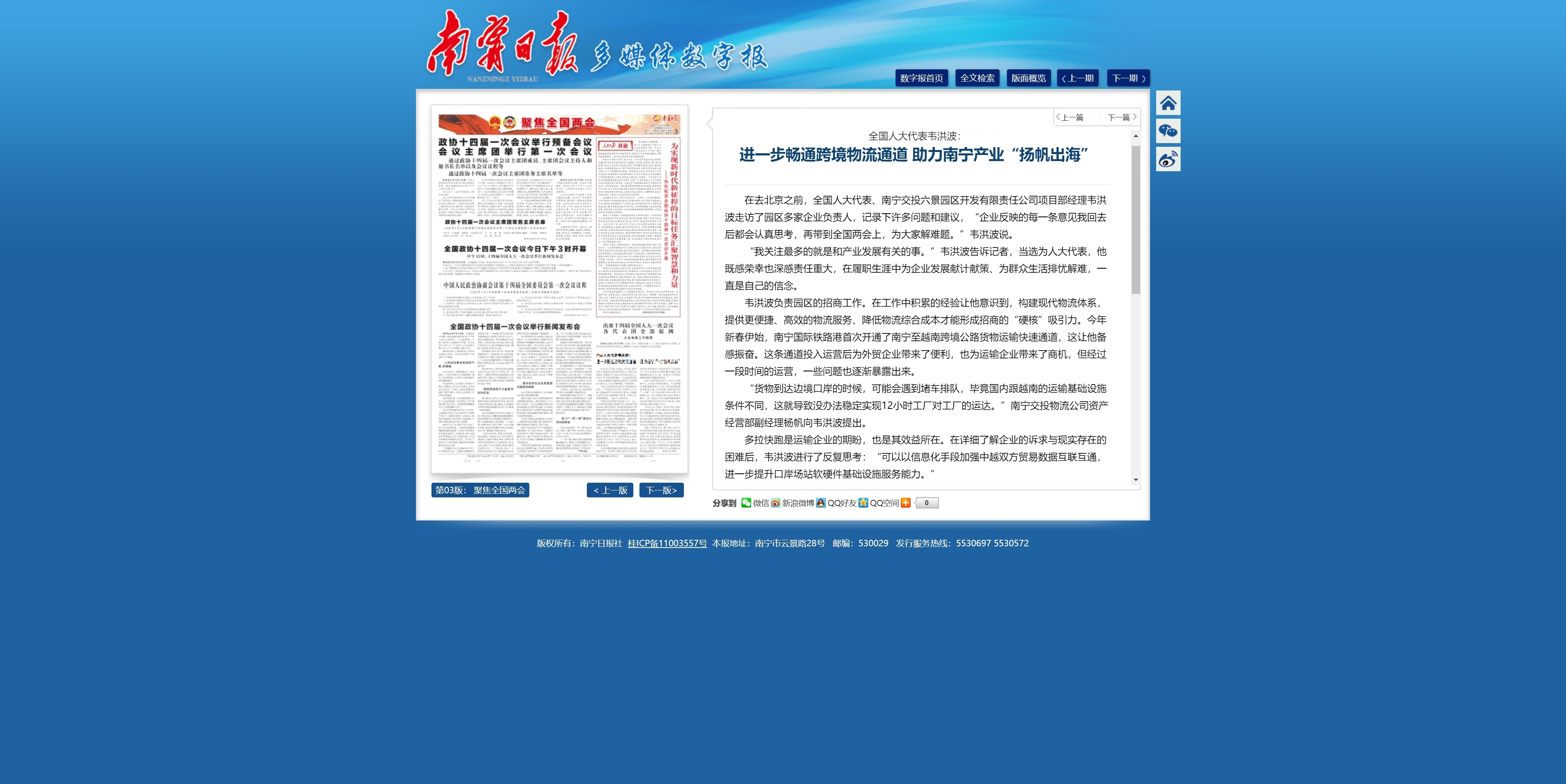 全國人大代表韋洪波:進一步暢通跨境物流通道 助力南寧產(chǎn)業(yè)“揚帆出?!?/h3>